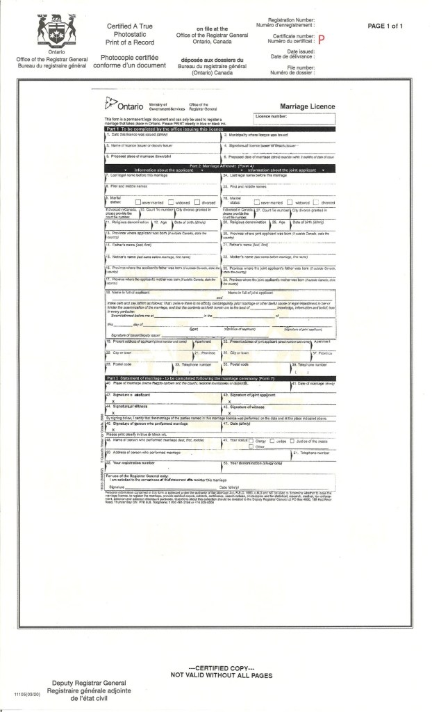 However, as stated on the Consulate’s website, we can confirm that the Consulate requires Certified Copies of Registration (usually referred to as “long forms”) for all vital records (birth, marriage, death). See below for an example. You can order these forms from Service Ontario.